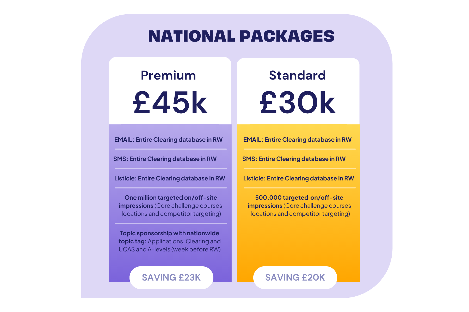 This excellent brand awareness campaign lets you takeover a topic with high-impact display. Make an impression where students are making important decisions about Clearing.